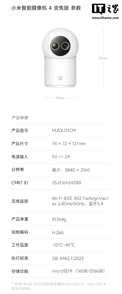 小米智能摄像机 4 变焦版具备以下主要特点: